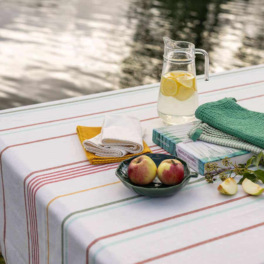 La nappe à rayures est un grand classique du linge de maison, revisitée ici dans une version durable et responsable.