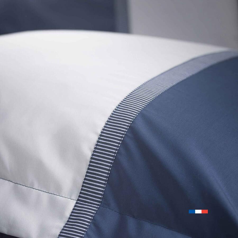 La taie d’oreiller bicolore Toi & Moi est intégralement teinte et confectionnée en France, garantissant un savoir-faire local et un contrôle qualité rigoureux.