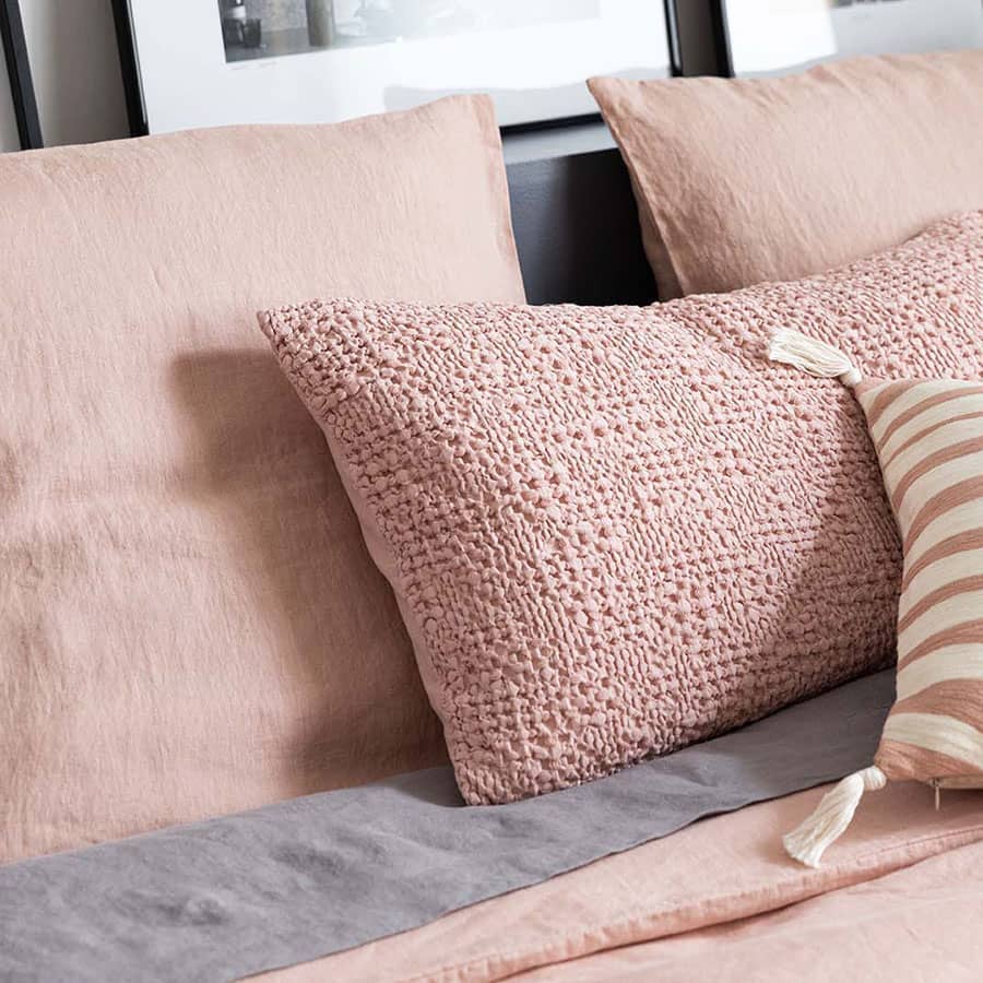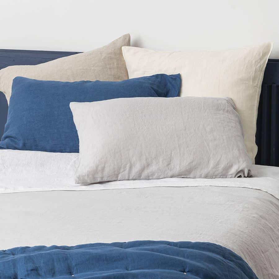 Ces deux taies d'oreiller rectangulaires en pur lin lavé offrent un aspect légèrement froissé et une douceur incomparable.