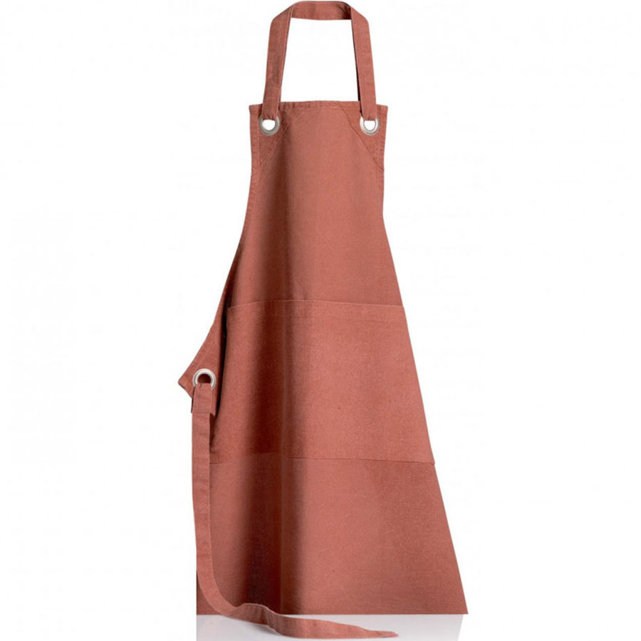 Le tablier Cook en coton lavé couleur Tomette allie style, originalité et modernité.
