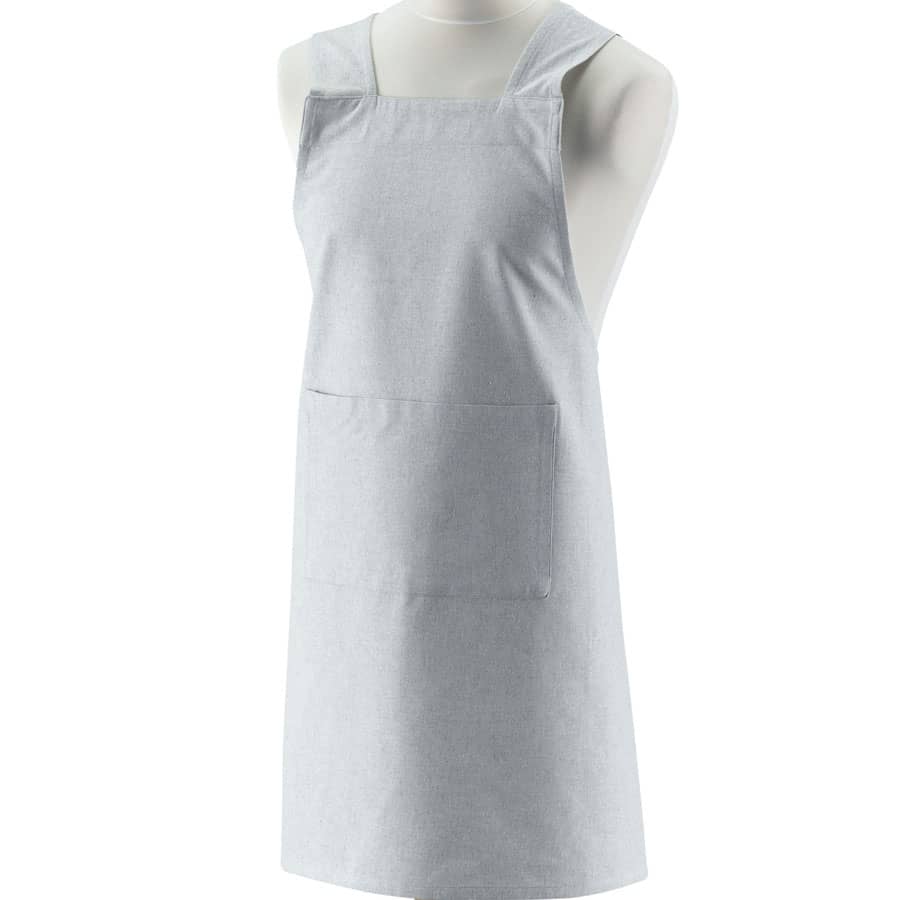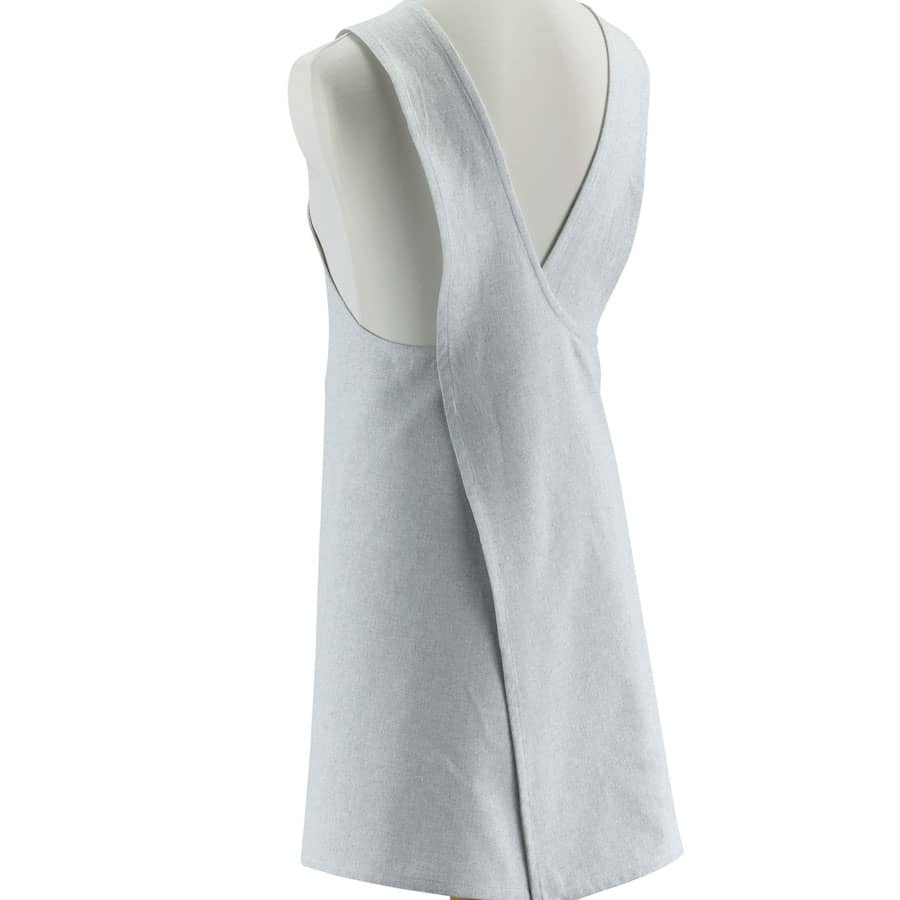 La forme du tablier japonais uni Gris perle permet de l'enfiler facilement.