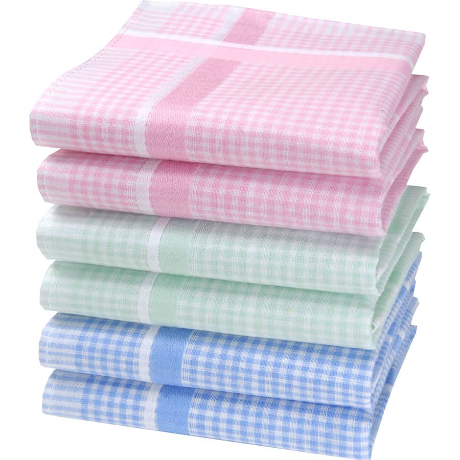 Lot de 6 mouchoirs femme en coton motif petits carreaux vichy.