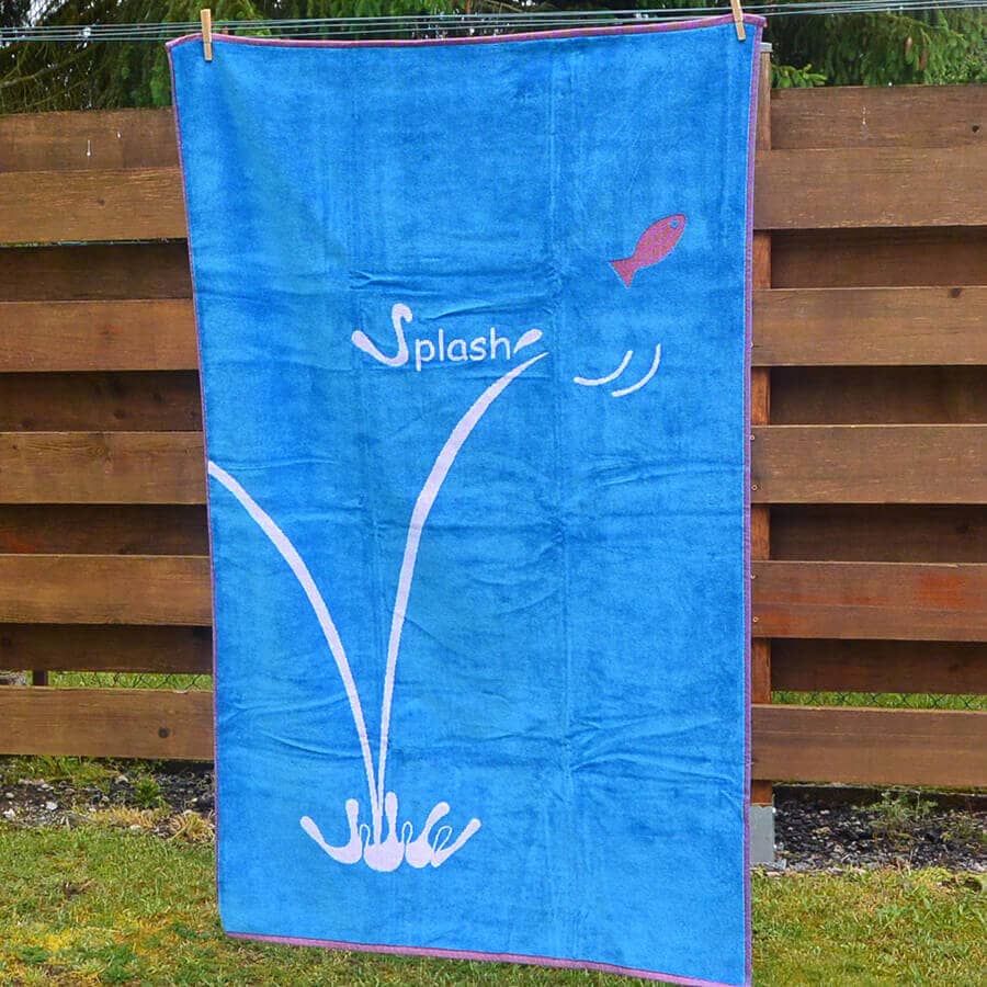 La serviette de plage Splash bleu est tissée en 100 % coton, une fibre naturelle qui garantit votre bien-être.