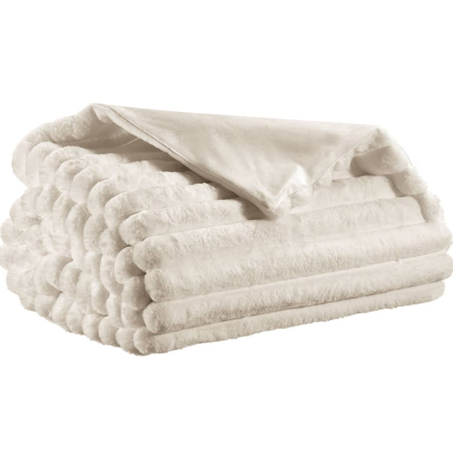 Jeté de lit en fausse fourrure côtelée ALICE Neige