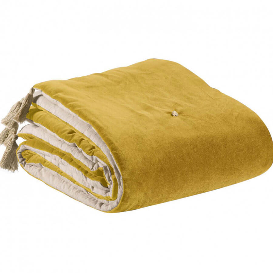 L'édredon Pompons Maïs vous accompagne aussi bien dans la chambre que dans le salon.